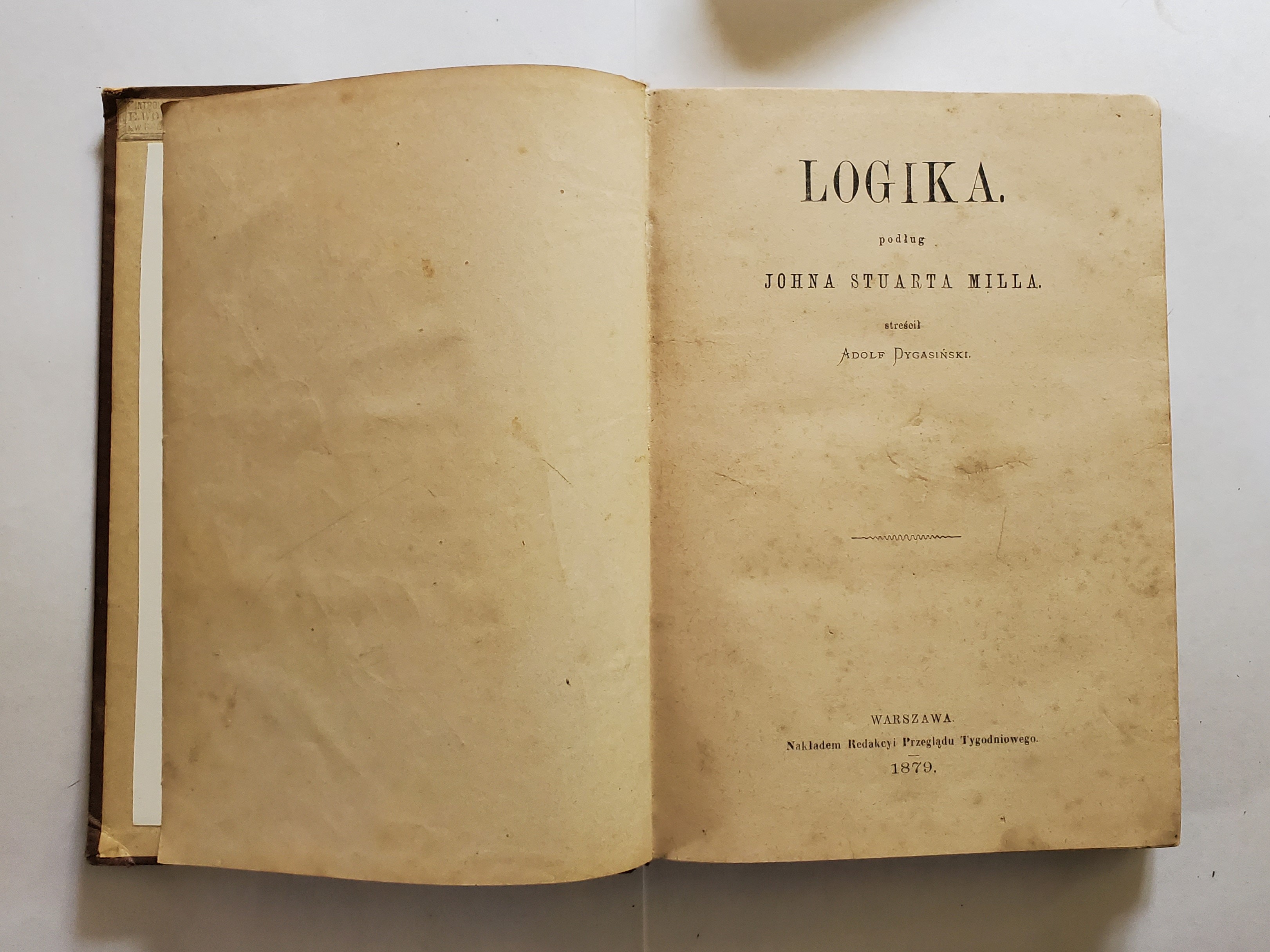 DYGASINSKI, Adolf. Logica podlug Johna Stuarta Milla. Warsaw, Przeglad Tygodniowy 1879